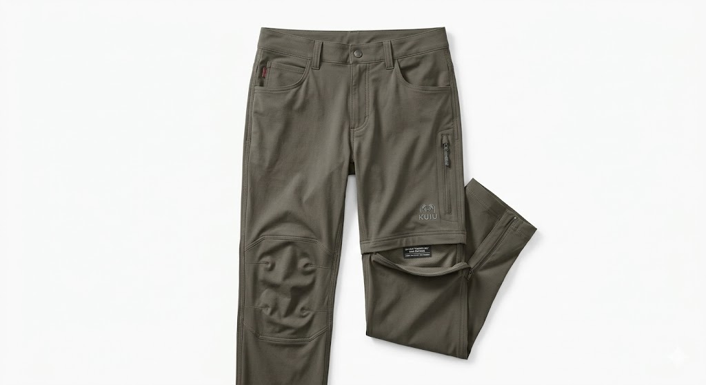 Durable, stretchy hiking pants with reinforced knees and water-resistant finish.